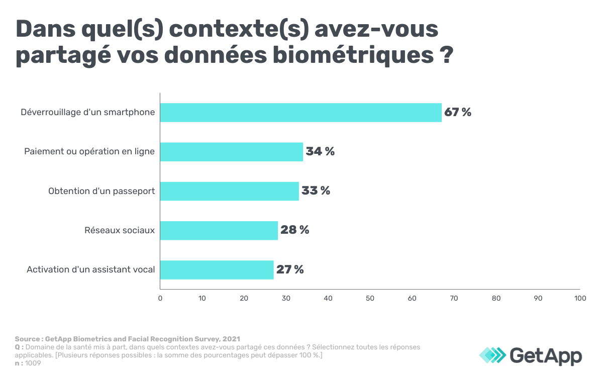 Mais est-on bien conscient, aujourd’hui en France, des données biométriques que l’on partage et de celles que l’on a déjà partagées ? GetApp a interrogé 1 009 Français sur ces points précis et sur leur volonté ou réticence à les voir entre les mains d’entreprises privées. Vous trouverez la méthodologie en fin d’article.