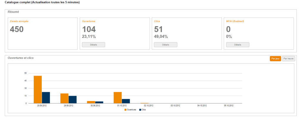 NP6 MailPerformance est un logiciel à double fonction : gérer vos campagnes d’emailing et les automatiser. Vous créez vos newsletters, planifiez leur envoi et automatisez vos campagnes. En plus des indicateurs de délivrabilité, NP6 MailPerformance vous offre des mesures précises du ROI de vos campagnes et des statistiques avancées sur vos utilisateurs (comportements, supports de lecture, etc.) pour segmenter et cibler vos clients et prospects.